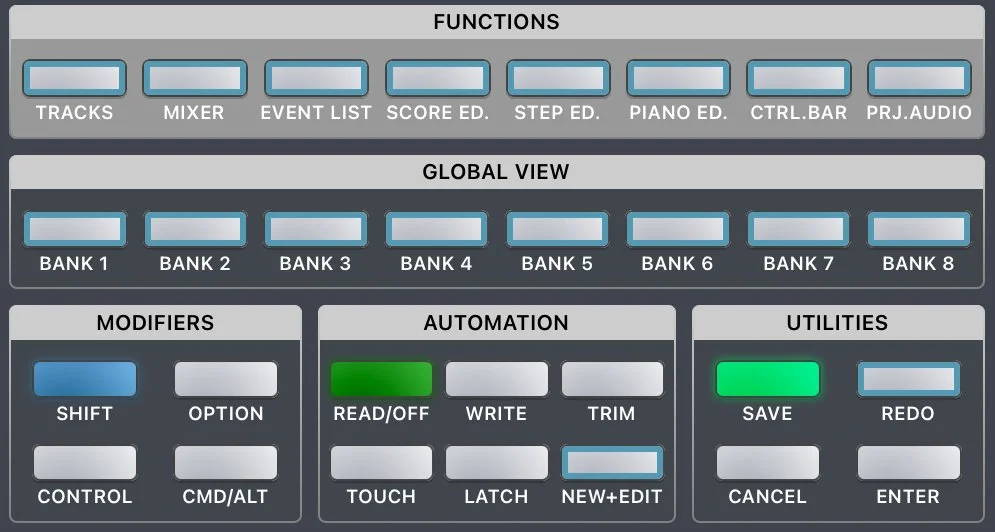 - Function buttons defined by your DAW that are also customisable